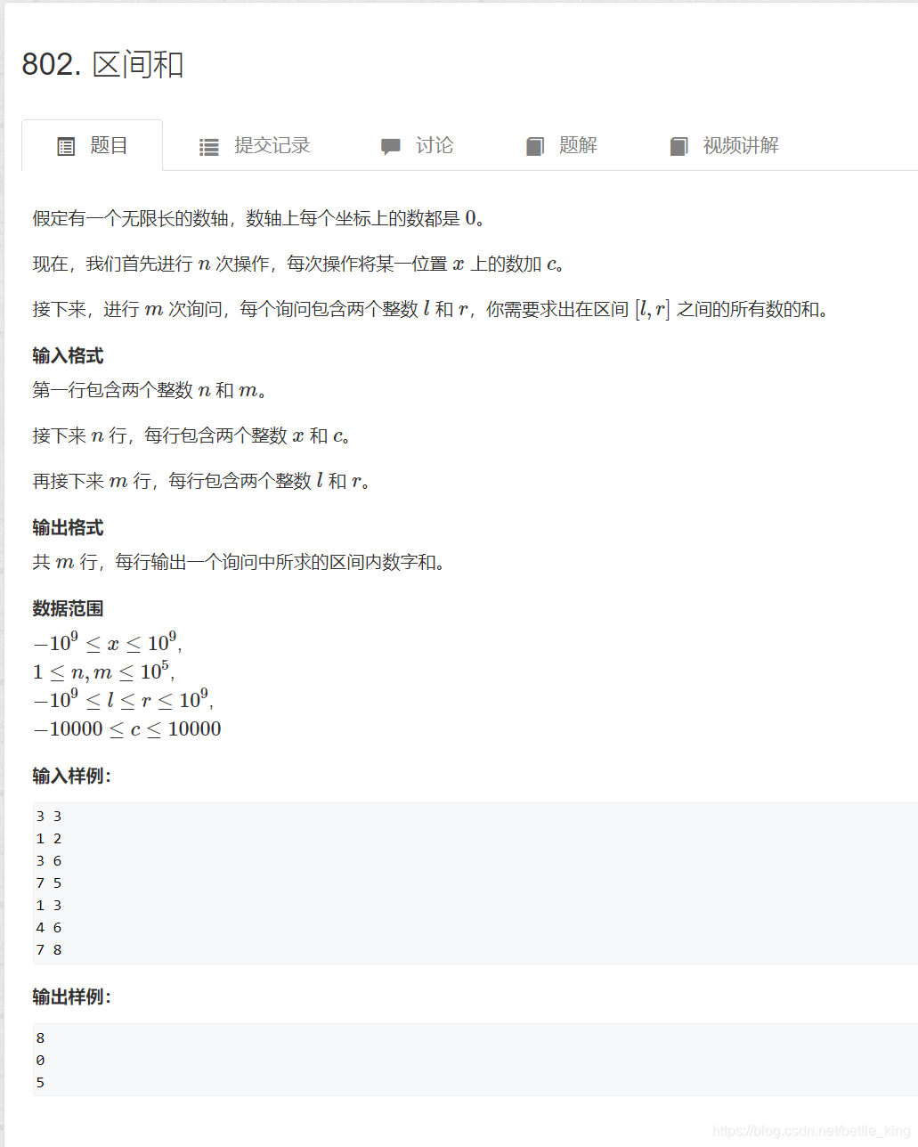 很显然,这是一道前缀和的题,但是数据太大(109),所以需要用到离散化。